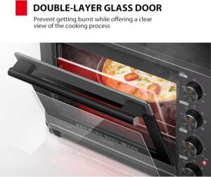 یکی از بخشهای مهم در ظاهر این توستر، درب شیشهای دوجداره است. این شیشه مقاوم در برابر حرارت بوده و علاوه بر زیبایی، امنیت بیشتری برای کاربر فراهم میکند. وجود شیشه دوجداره باعث میشود گرما در محفظه داخلی حفظ شود و در عین حال بتوانید بدون باز کردن درب، روند پخت غذا را مشاهده کنید. این ویژگی از نظر صرفهجویی در انرژی و کیفیت پخت اهمیت زیادی دارد.