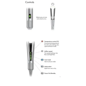 گذشته از دو حالت اصلی، Dyson Airstrait HT01 مجهز به یک گزینه هوای سرد (Cool Mode) نیز هست. این ویژگی به کاربر اجازه میدهد پس از پایان فرآیند صاف کردن، موها را با جریان هوای خنک تثبیت کند. استفاده از این قابلیت به قفل شدن حالت مو و افزایش ماندگاری آن کمک میکند و در عین حال از وزشدگی ناخواسته جلوگیری مینماید.