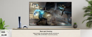 اگر از علاقهمندان به بازیهای ویدیویی هستید، این ویژگی اهمیت دوچندانی پیدا میکند. چراکه تلویزیون با پشتیبانی از HDMI 2.1 و قابلیتهایی مانند VRR (Variable Refresh Rate) و ALLM (Auto Low Latency Mode) تأخیر ورودی را به حداقل میرساند و بازیها را با واکنش سریعتر و هماهنگی کامل بین تصویر و کنترل تجربه خواهید کرد. بهاینترتیب، هنگام اجرای بازیهایی مثل مسابقات اتومبیلرانی یا شوترهای اول شخص، هیچ فریمی از دست نرفته و تجربهای کاملاً روان خواهید داشت.