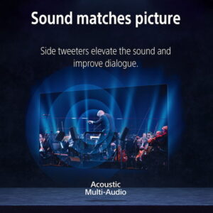 همچنین سیستم Acoustic Multi-Audio با پردازشگر تصویر Cognitive Processor XR هماهنگ عمل میکند؛ یعنی تصویر و صدا بهصورت همزمان پردازش میشوند تا هماهنگی کامل میان حرکت روی صفحه و موقعیت صدا حفظ شود. برای مثال، اگر بازیگری در سمت راست تصویر حرکت کند و صحبت کند، صدا دقیقاً از همان سمت شنیده میشود. این هماهنگی تصویر و صدا باعث افزایش حس واقعگرایی و غوطهوری کامل در محتوا میشود.