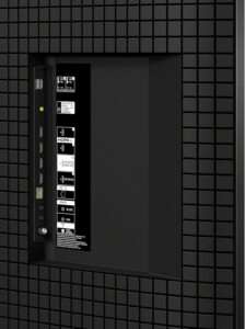 پورتهای HDMI در کناره و پشت تلویزیون قرار دارند و به گونهای طراحی شدهاند که هنگام نصب دیواری یا روی میز، دسترسی به کابلها راحت باشد.