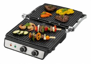 علاوه بر جنس بدنه، طراحی ارگونومیک دستهها و کلیدهای کنترل نیز به گونهای است که استفاده از گریل را برای هر فردی، چه حرفهای و چه تازهکار، آسان و بیدردسر میکند. دستههای مقاوم در برابر حرارت، ایمنی کاربر را تضمین میکنند و کمک میکنند بدون نگرانی از داغ شدن بدنه، دستگاه را جابجا یا باز و بسته کنید.