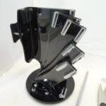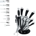 طراحی شیک و حرفهای این سرویس، آن را به گزینهای مناسب برای استفاده در مهمانیها، دورهمیها و حتی رستورانهای خانگی تبدیل کرده است. ظاهر مدرن پایه و چیدمان چاقوها روی آن، جلوه خاصی به میز آشپزخانه یا پذیرایی میبخشد.