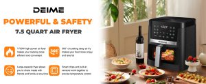 ظرفیت 7.5 لیتری دستگاه این امکان را فراهم میکند که حجم بالایی از مواد غذایی در یک نوبت پخته شود. این ویژگی برای خانوادههای چندنفره یا زمانی که نیاز به آمادهسازی غذا برای چند نفر وجود دارد، بسیار کاربردی است. در عمل، کاربر میتواند بدون چند مرحله پخت، غذای مورد نیاز را آماده کند و در زمان صرفهجویی شود.