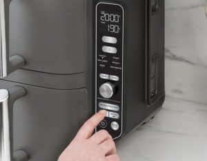 یکی دیگر از امکانات هوشمند کنترل پنل دیجیتال، دکمهی MATCH COOK است. این گزینه زمانی به کار میآید که بخواهید در هر دو سبد، یک نوع غذا با زمان و دمای یکسان بپزید. با فشردن این دکمه، تنظیمات سبد اول بهصورت خودکار روی سبد دوم نیز اعمال میشود. در نتیجه بدون نیاز به تکرار تنظیمات، هر دو بخش دستگاه بهطور همزمان و هماهنگ شروع به کار میکنند.