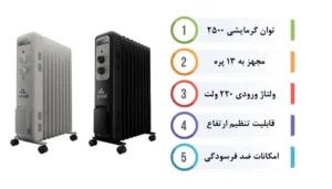 | نوع دستگاه | شوفاژ برقی روغنی بدون فن |