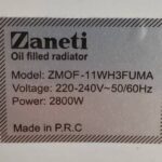 2.مشخصات فنی شوفاژ برقی ۱۵ پره زانتی مدل ZMOF-15WH3FUMA