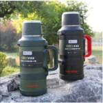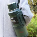 2. حمل آسان در محیطهای مختلف: دسته مقاوم و مستحکم این فلاسک اجازه میدهد آن را به راحتی روی دوش، در دست یا حتی داخل کیف بزرگ حمل کنید، بدون نگرانی از سر خوردن یا افتادن.