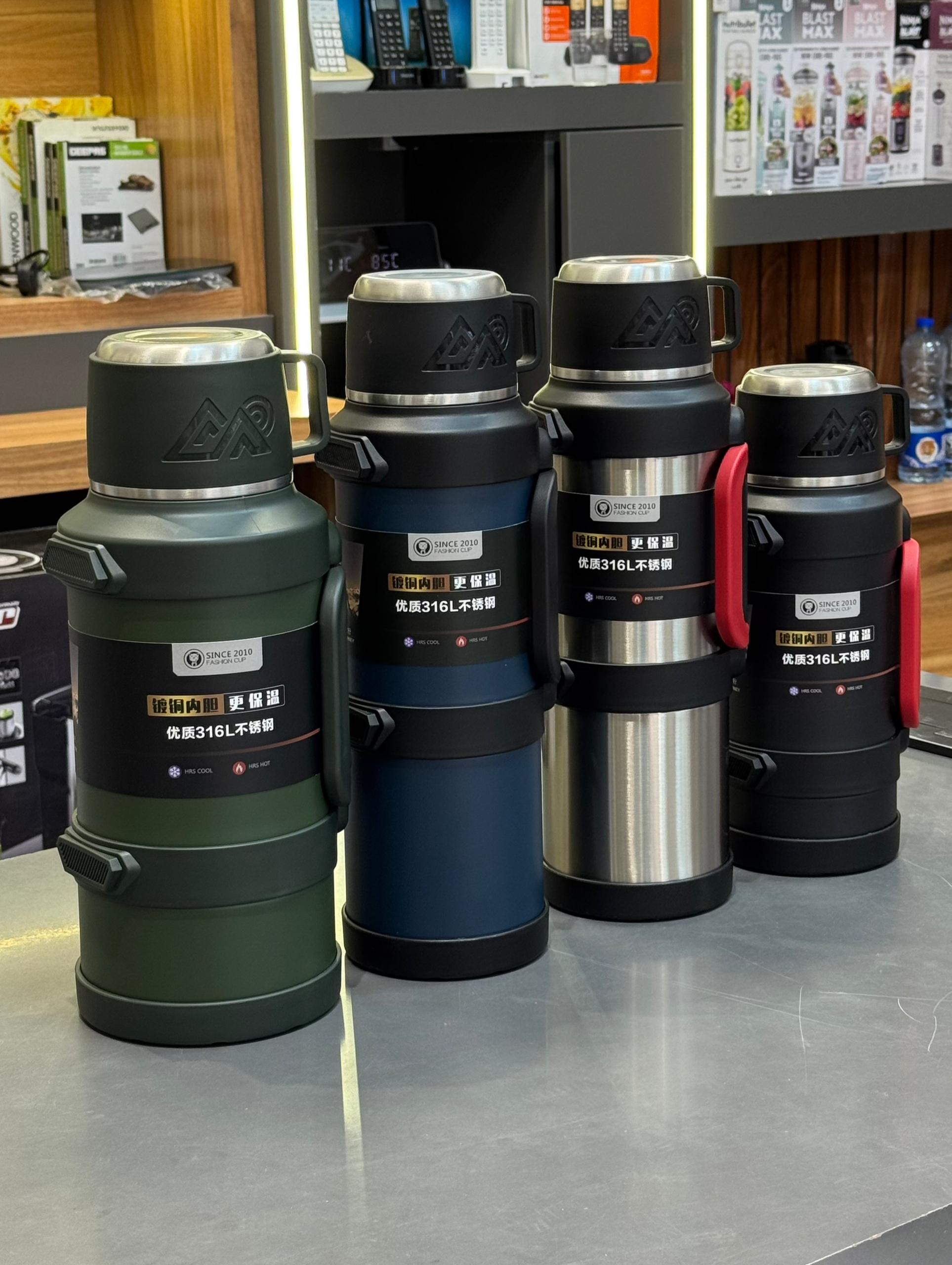 در بخش کاربردی، این فلاسک دارای دستهای محکم و ارگونومیک است که حمل آن را بسیار آسان میکند. چه در سفر باشید، چه در کوهنوردی و چه در محل کار، میتوانید بدون نگرانی آن را همراه خود داشته باشید. همچنین به دلیل داشتن ظرفیتهای مختلف، کاربر میتواند بسته به نیاز خود یکی از مدلها را انتخاب کند. سایز ۱.۷ لیتر برای استفادههای فردی یا روزانه عالی است، سایز ۲.۵ لیتر انتخابی مناسب برای خانوادهها و جمعهای کوچک محسوب میشود و سایز ۳.۲ لیتر برای سفرهای طولانی و جمعهای پرجمعیت گزینهای ایدهآل خواهد بود.