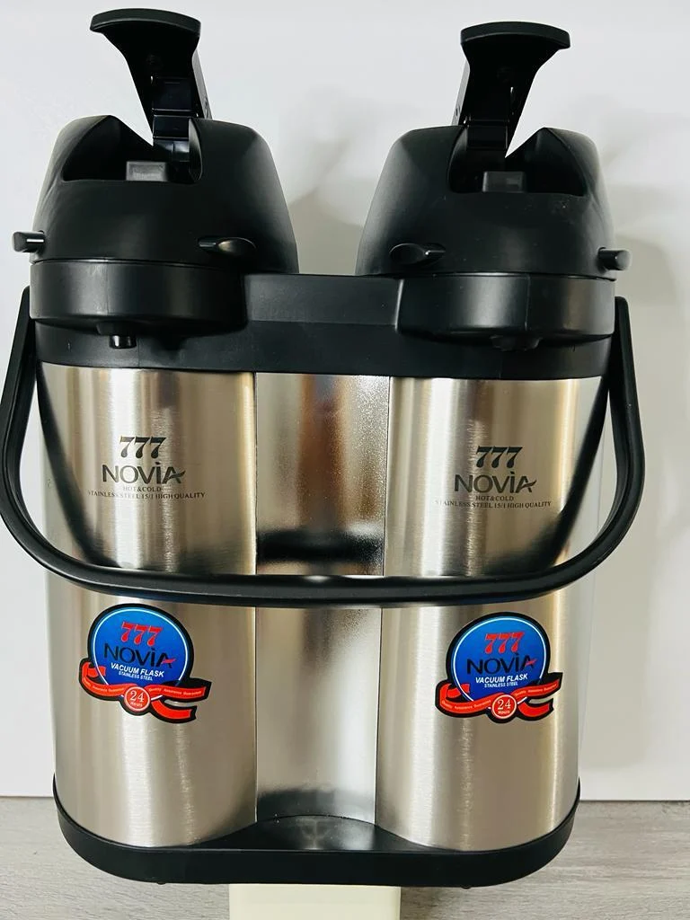 فلاکس پمپی دوجداره نویا مدل:SS19HNCترمس پمپی دوجداره استیل نویا مدل SS19HNC انتخابی ایدهآل برای افرادی است که به دنبال یک محصول با دوام، کاربردی و شیک برای نگهداری نوشیدنیهای گرم و سرد هستند. این ترمس با ظرفیت کلی ۳.۸ لیتر، از دو مخزن مجزای ۱.۹ لیتری تشکیل شده که به کاربران این امکان را میدهد تا همزمان دو نوع نوشیدنی را در شرایط دمایی مناسب نگهداری کنند. بدنه استیل ضدزنگ و طراحی دوجداره آن، باعث میشود دمای نوشیدنیها برای مدت زمان قابل توجهی حفظ شود؛ بهگونهای که نوشیدنیهای گرم تا ۸ ساعت داغ و نوشیدنیهای سرد برای چندین ساعت خنک باقی میمانند.