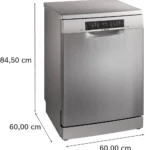 ابعاد این ماشین ظرفشویی کاملاً استاندارد بوده و به راحتی در فضای مخصوص ماشین ظرفشویی در کابینتها جا میگیرد. عرض ۶۰ سانتیمتر، عمق متعادل و ارتفاع مناسب، امکان نصب آسان را در آشپزخانههای کوچک و بزرگ فراهم میکند. طراحی هوشمندانه پایهها نیز کمک میکند تا دستگاه به خوبی روی سطح قرار بگیرد و لرزش آن به حداقل برسد.