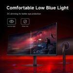 علاوه بر این، طراحی ارگونومیک مانیتور با خمیدگی ۱۵۰۰R و پایه قابل تنظیم، باعث میشود که حتی در حالت اتصال چندین دستگاه، راحتی استفاده حفظ شود و کاربران بتوانند زاویه مانیتور را با توجه به موقعیت خود تنظیم کنند.