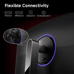 مانیتور دارای دو پورت DisplayPort و دو پورت HDMI و خروجی هدفون ۳.۵ میلیمتری است.