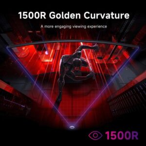 یکی از ویژگیهای بارز این مانیتور، خمیدگی ۱۵۰۰R است. این خمیدگی باعث میشود چشم کاربر در تمام طول صفحه با زاویه دید طبیعی مواجه شود و تجربه بصری غوطهورانهتری ایجاد گردد. این ویژگی برای گیمرها بسیار مهم است، زیرا در بازیهای Open-World یا Racing، احساس حضور واقعی در محیط بازی را منتقل میکند. همچنین برای تماشای فیلم و کارهای حرفهای، خمیدگی باعث کاهش انعکاس و خستگی چشم میشود.