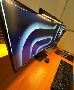 خمیدگی مانیتور در کنار نسبت تصویر ۲۱:۹ تجربهای شبیه به استفاده از دو مانیتور به صورت همزمان ایجاد میکند، بدون نیاز به فضای اضافی روی میز. این موضوع باعث میشود تا کاربر بتواند محیط کاری بزرگتر و کاربردیتر داشته باشد و چندین پنجره را همزمان باز کرده و مدیریت کند.
