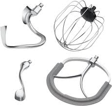 ابزارهای همزن (قلاب خمیر، پره تخت، همزن بالندار): این ابزارها از جنس آلومینیوم یا استیل هستند و باید پس از هر استفاده سریعاً شسته شوند تا مواد به آنها نچسبد. میتوانید آنها را در ماشین ظرفشویی نیز قرار دهید اما استفاده مکرر از آن ممکن است به مرور روکش ابزارها را تضعیف کند، بنابراین شستشو با دست توصیه میشود.