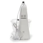 بدنه همزن از پلاستیک مقاوم ساخته شده که علاوه بر سبک بودن، در برابر ضربه و فشارهای روزمره مقاوم است. این انتخاب هوشمندانه نه تنها باعث کاهش وزن کلی دستگاه شده، بلکه باعث شده حمل و جابهجایی آن نیز آسانتر باشد. در کنار بدنهی پلاستیکی، وجود کاسه استیل ضدزنگ با سطحی براق و صیقلی جلوهای لوکس به محصول بخشیده و هماهنگی کاملی با بدنه ایجاد کرده است. ترکیب رنگ سفید و نقرهای یا مشکی و استیل باعث میشود همزن HR3745 بهراحتی در هر آشپزخانهای با هر نوع دکوراسیون مدرن یا کلاسیک جای بگیرد.